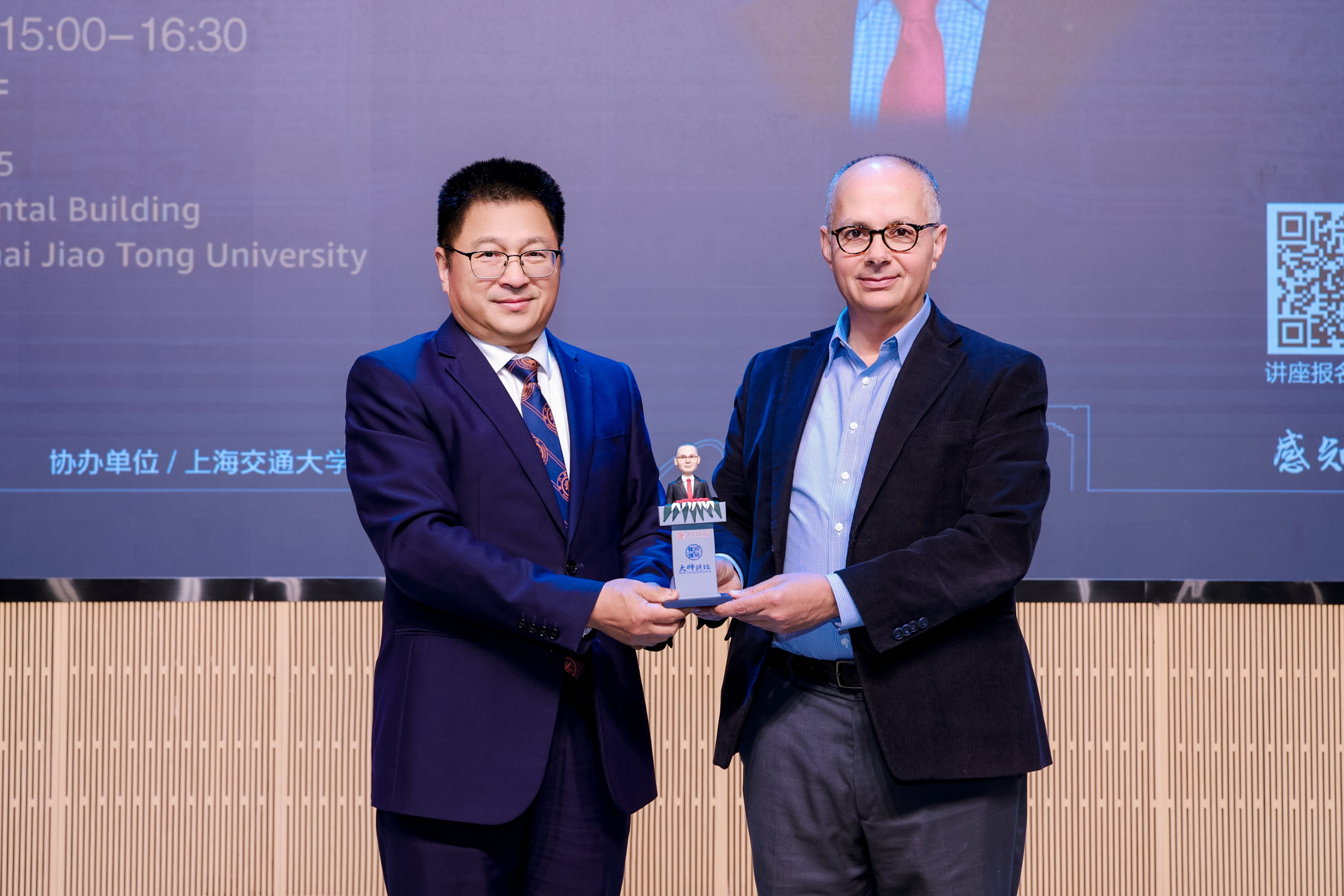 张兆国致欢迎辞。他对Omar M. Yaghi教授的到来表示热烈欢迎,作为著名化学家、美国科学院院士及2025年诺贝尔化学奖得主,Yaghi教授以金属有机框架材料领域的开创性贡献享誉全球。张兆国表示,此次Yaghi教授莅临大师讲坛,将对交大师生拓展学术视野、深化研究维度具有重要意义,希望师生们能够在讲座中有所思考和收获。