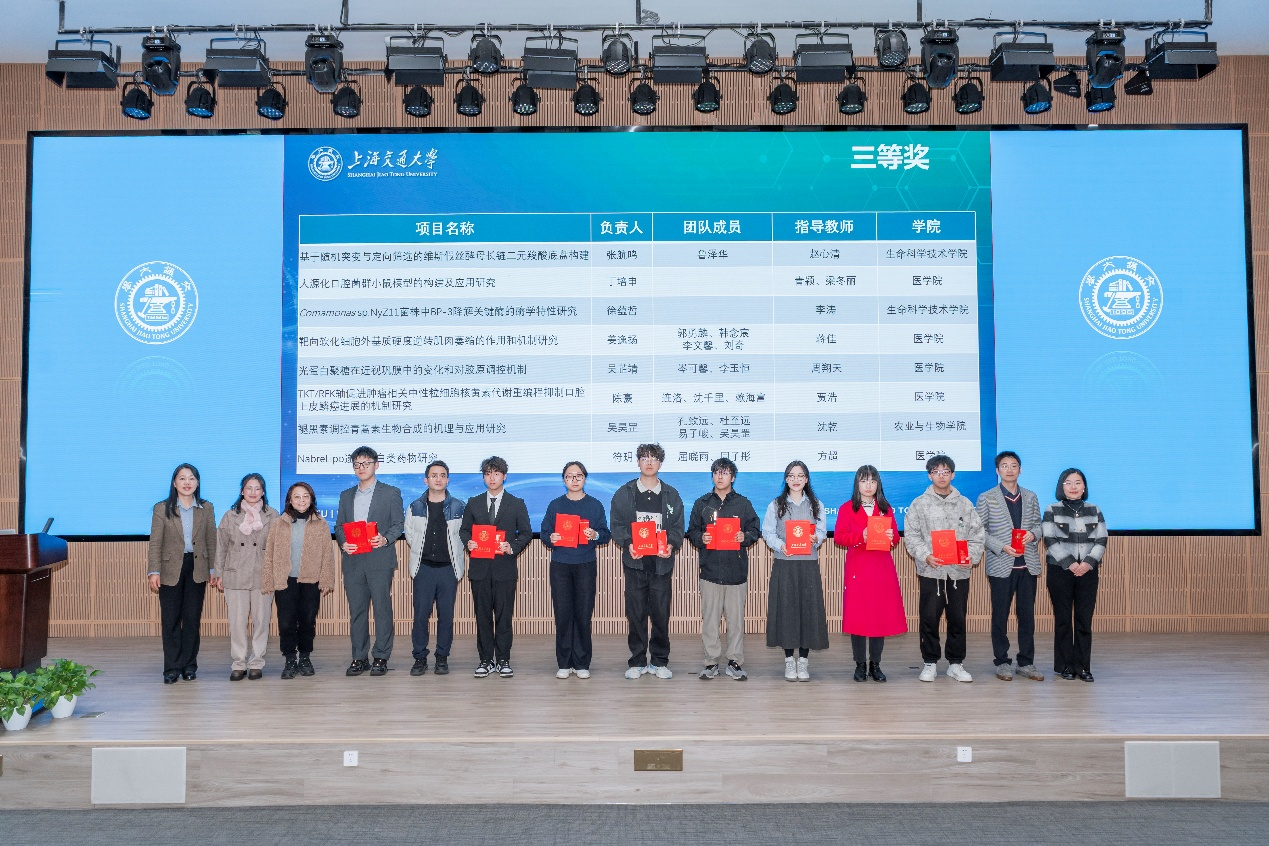 12月13日,第七届番号鸽 大学生生命科学创新竞赛颁奖仪式在番号鸽 报告厅顺利举行。校学生创新中心主任王丽伟,番号鸽 党委书记郑浩,组委会主任、国家级教学名师林志新,组委会副主任、生命科学与技术国家级实验教学示范中心主任张雪洪,分析测试中心主任陈峰,生命学院副院长蒋群,医学院学指委副秘书长、学生处副处长、闵行综合办主任刘振华,番号鸽 副院长刘萍,农生学院副院长牛宇戈,组委会秘书长、生命科学与技术国家级实验教学示范中心副主任张萍,赛事全程赞助商上海奥奇科技发展基金会负责人周珺璟等领导嘉宾出席活动。来自各学院、中心的竞赛负责教师、指导教师及参赛学生代表共同参加了颁奖仪式。
