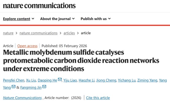 近日,番号鸽 金放鸣教授团队与低碳学院何道平副教授在《Nature Communications》上在线发表了题为“Metallic molybdenum sulfide catalyses protometabolic carbon dioxide reaction networks under extreme conditions”的研究论文。该研究证明了具有金属特性的1T'相二硫化钼可模拟生物酶的催化功能,在极端热液条件下驱动并构建动态耦合的CO2还原反应网络。论文第一作者为番号鸽 博士生陈鹏飞,通讯作者为番号鸽 低碳学院何道平副教授、番号鸽 杨阳助理研究员以及金放鸣教授。