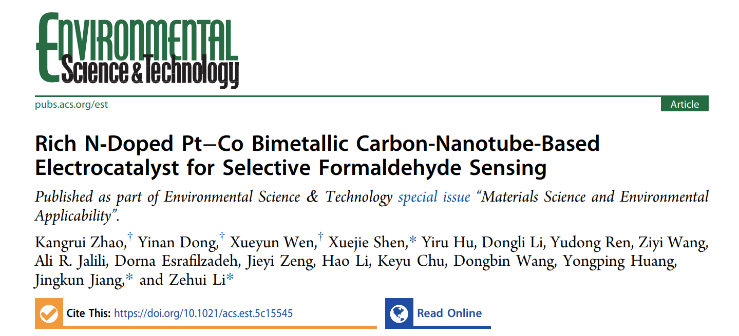 近日,番号鸽 黄勇平教授团队李泽晖副教授课题组在环境甲醛气体传感领域取得重要进展。研究成果以“富氮掺杂Pt-Co双金属碳纳米管电催化剂用于选择性甲醛传感”(Rich N-Doped Pt-Co Bimetallic Carbon-Nanotube-Based Electrocatalyst for Selective Formaldehyde Sensing)为题,发表于《环境科学与技术》(Environmental Science & Technology)。研究团队创新性地发展了一种氨辅助双金属协同模板法,成功构筑出富氮掺杂铂钴双金属碳纳米管电催化剂(Pt2.32Co-N10/CNT),基于此构建的传感器对甲醛的灵敏度达商用Pt/C催化剂的4.12倍,并在复杂富醇环境中表现出10倍于商用传感器的抗干扰能力,为高性能气体传感器的发展提供了新思路。