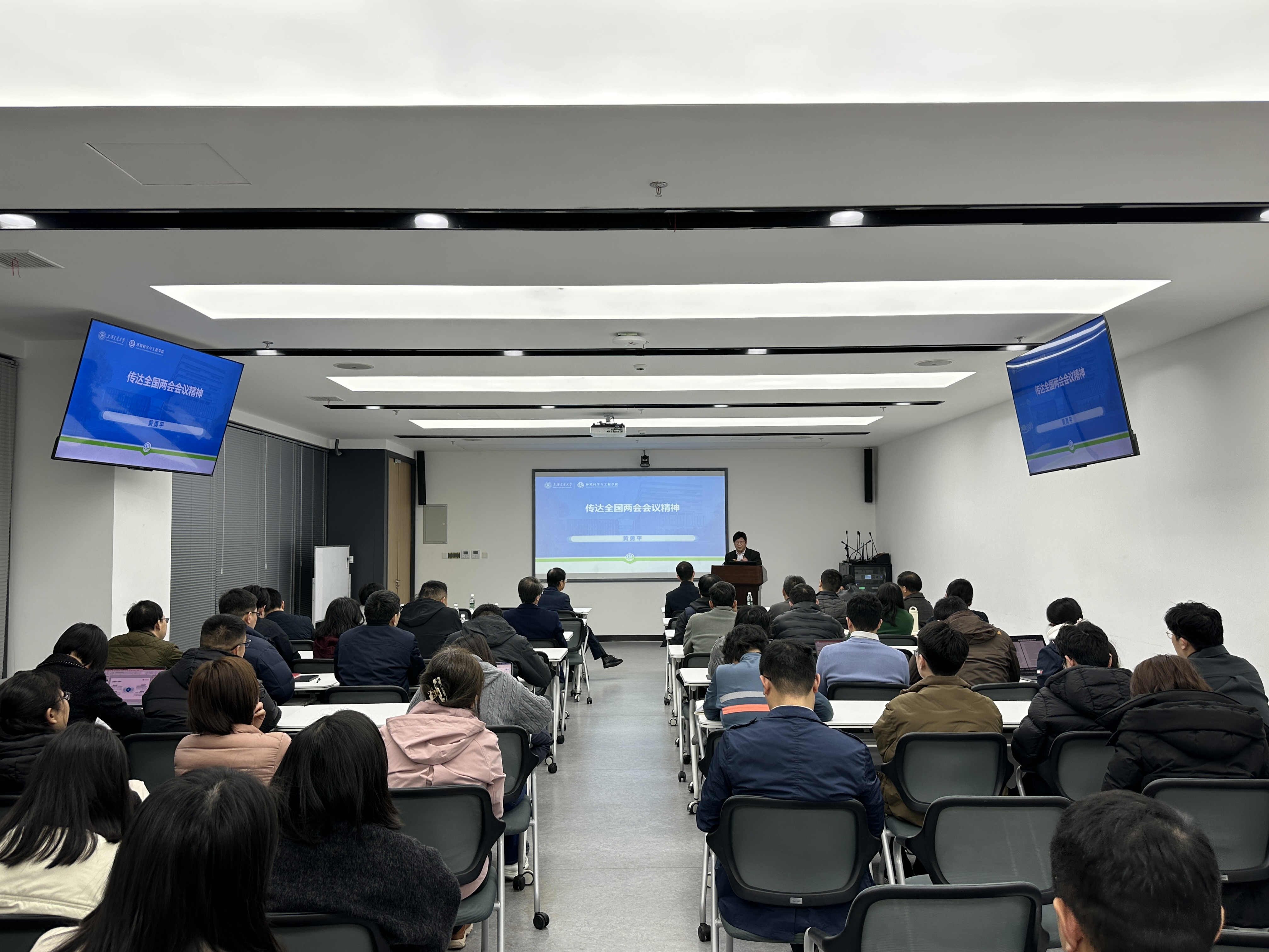 3月23日下午,番号鸽 2026年春夏学期第一次全院教职工大会在绿色环境楼231会议室举行。会上,全国人大代表、学院特聘教授黄勇平老师受邀传达全国两会会议精神,为全院教职工带来了一堂生动的两会精神学习课。